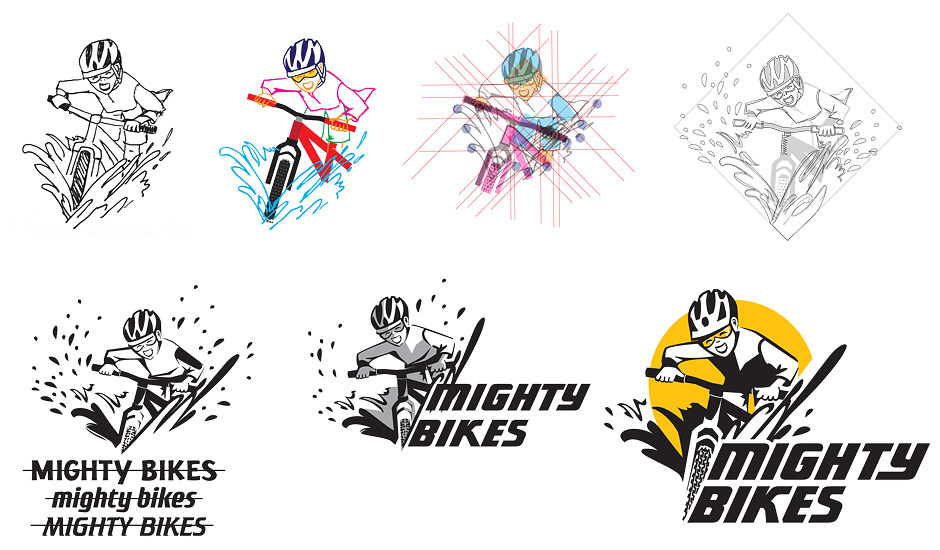 I designed the Mighty Bikes logo in several formats to create a versatile piece of branding that can be used with many applications, including print, digital and differnt kinds of swag.